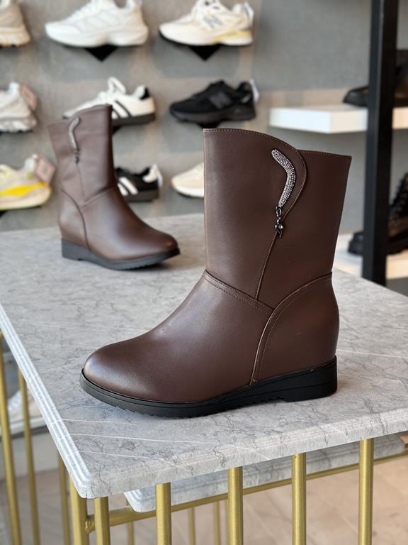 این نیم بوت با لژ مخفی داخلی , به صورت طبیعی قد را افزایش می دهد و بدون اینکه دیده شود ظاهری کشیده تر را به استایل شما می بخشد.