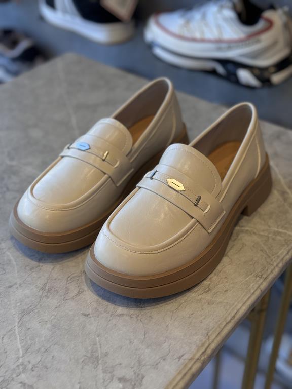 کفش کالج کوکو پاشنه 3سانت کد b755-3رنگ کرم سایز 40