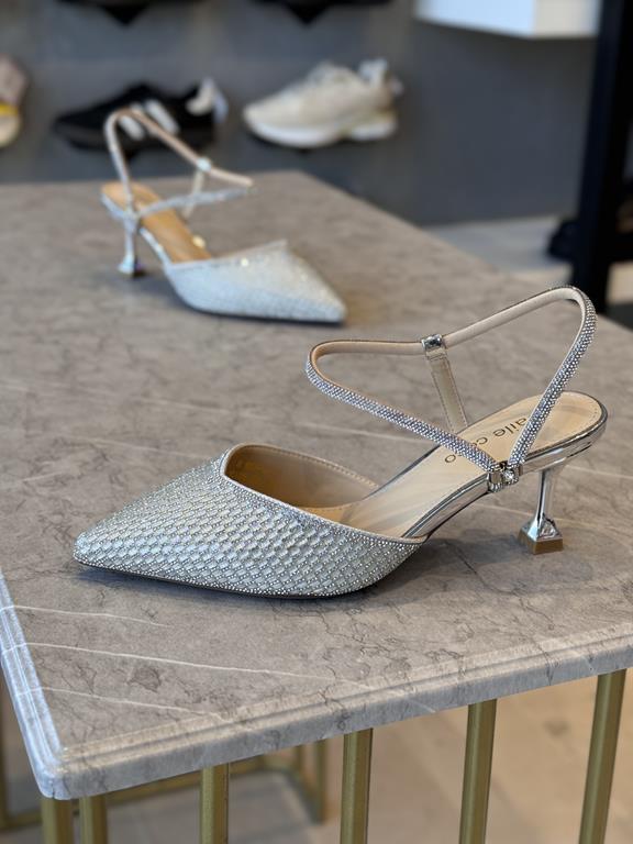 کفش مجلسی زنانه پاشنه 7سانت کد b558-2 رنگ نقره ای سایز 38